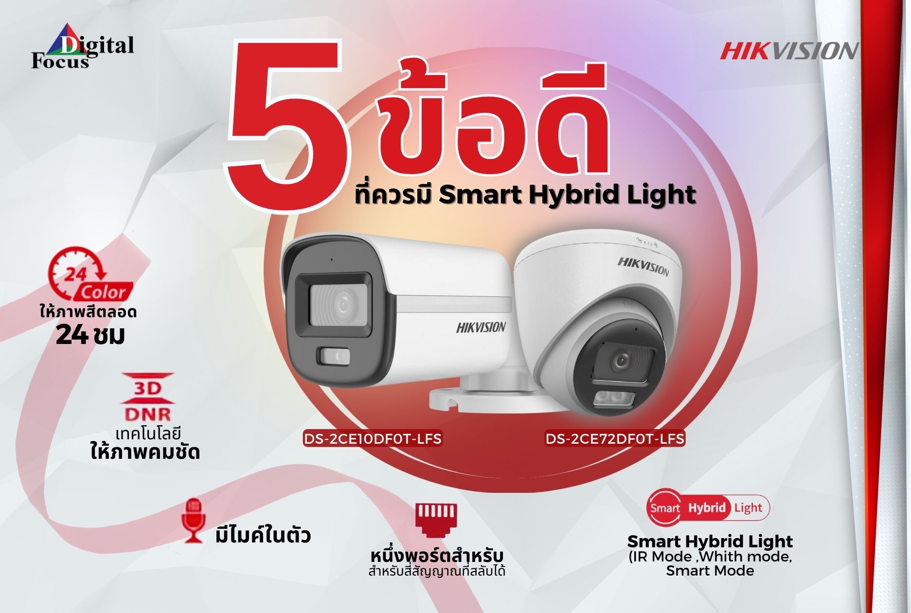 และแสงสีขาวเข้าด้วยกัน เพื่อมอบภาพสีที่คมชัด ตลอด 24 ชั่วโมง โดยไม่ต้องพึ่งแสงสว่างภายนอก เทคโนโลยีนี้อยู่ในกล้อง CCTV Hikvision รุ่นพิเศษ